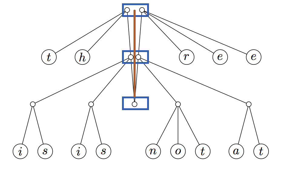 这种新的数据结构被称为手指树.手指树由沿其树脊(棕色线)分布的几层(下方蓝色框)组成: