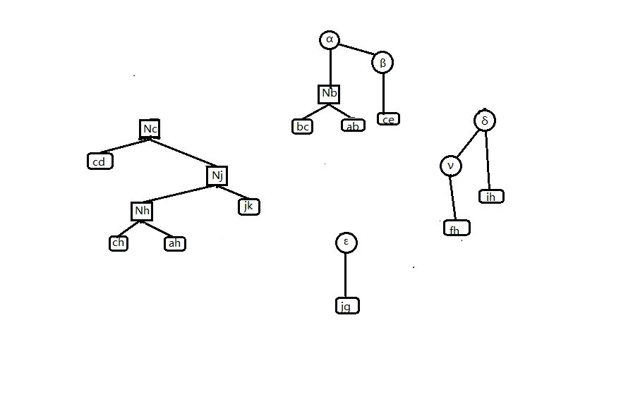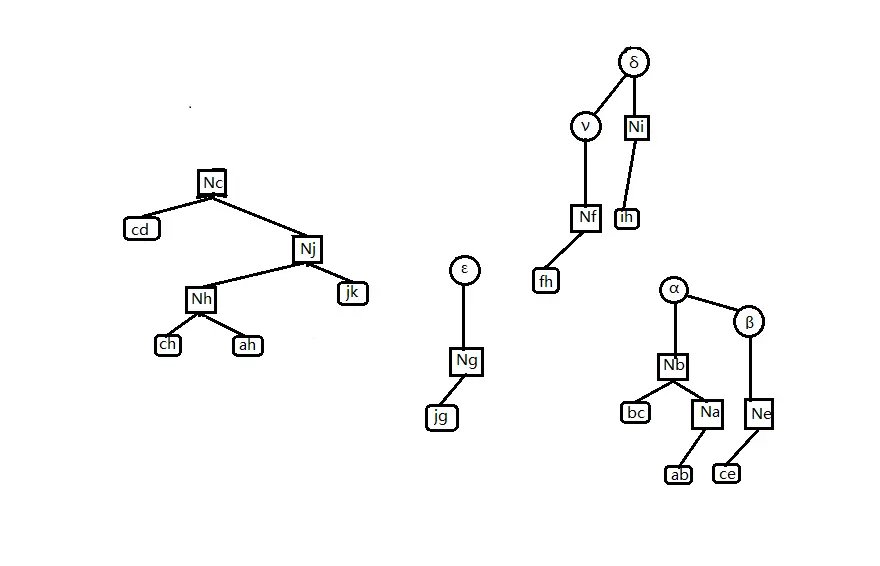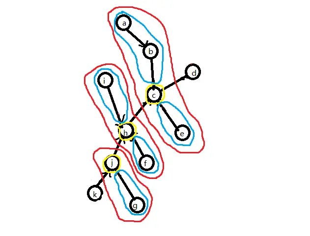 由树收缩的基本操作可知,簇路径上的点、边 ( 𝑗 , ℎ , 𝑐 , 𝑗 ℎ , ℎ 𝑐 ) ( j , h , c , j h , h c ) 的信息最后是通过 Compress 操作才加入 𝐶 ( 𝑘 , 𝑔 ) C ( k , g ) 的,而的非簇路径点 ( 𝑎 , 𝑏 , 𝑖 , 𝑓 , 𝑔 , 𝑒 , 𝑖 𝑔 , ⋯ ) ( a , b , i , f , g , e , i g , ⋯ ) 是通过 Rake 操作才加入 𝐶 ( 𝑘 , 𝑔 ) C ( k , g ) 的.