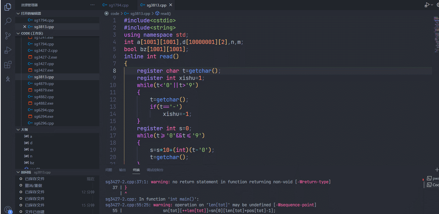 若要在以后使用 VS Code 编译并调试代码,所有的源代码都需要保存至这个文件夹内.若要编译并调试其他文件夹中存放的代码,需要重新执行上述步骤(或将旧文件夹内的 .vscode 子文件夹复制到新文件夹内).